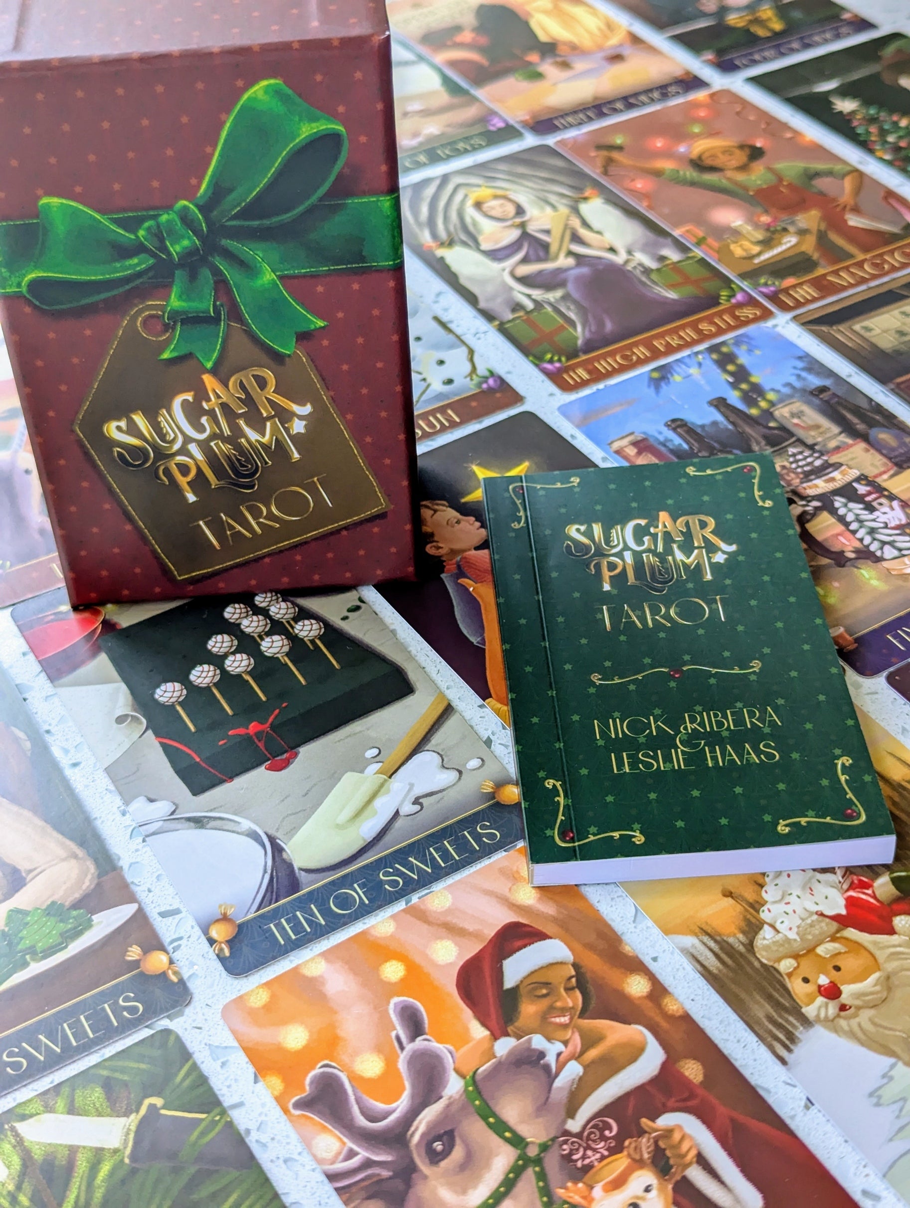 Just in Time for the holiday season, Sugar Plum marks the first project that my wife, Leslie Haas, and I have partnered on. Her beautiful christmas- themed poetry accompanies each card, illsutratrated in a festive story book style. This tarot deck features 78 original illustrations and is based on the rider Waite Smith tarot deck. The suits you can expct to find are Bells, Sweets, Toys, and Mugs. Pick yours up before the frost thaws.