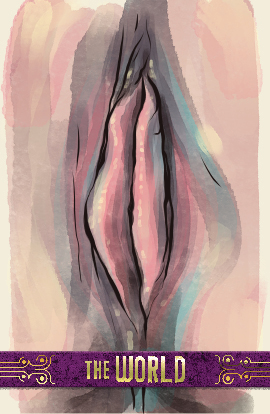 The world is the completion of the fool's journey. The world shows us that the beginning and the end of things are all part of a single energetic whole. We are part of the universe and the universe is in us. The world embodies the wisdom of understanding and the unity of all of the elements in the tarot. It represents achievement, freedom, and the unification of the inner being and outer material being.