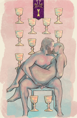 The three of cups is a celebration of the passion of this water sign. An emphatic, even divine experience of the way that emotion wells up and out of us in ways we feel must be shared.