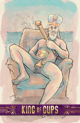 The king of cups wears his power with ease, working calmly within the waves and flow of the situations he must master. His relaxed, patient approach radiates calm to those around him.