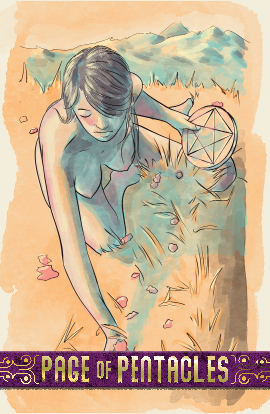 The page of pentacles is curious about the natural world around them and all it holds. They gather skills, experiences, and build the stamina needed to become what they envision.