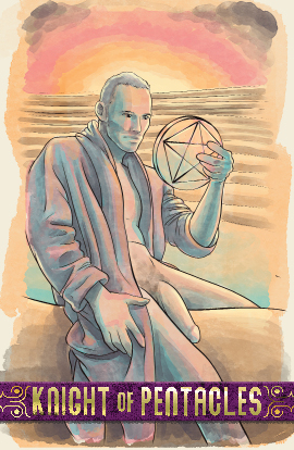 Surrounded by lands to travel, the knight of pentacles stays focused on what they must accomplish. What skills does the knight have and what must they still master to succeed at their goal?