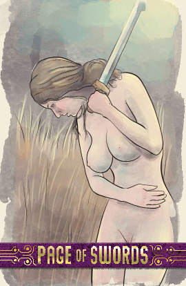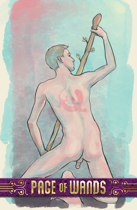 The page of wands is fire and action in a more youthful, beginning state. The page is enthusiastic to learn but may be more curious than lustful.