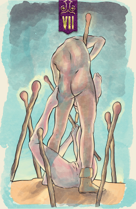 The chariot shows a figure controlling a situation through willpower and personality. The sexual is controlled. Victory is achieved, but the situation is not reconciled. The chariot shows the ability you have to change the world around you.