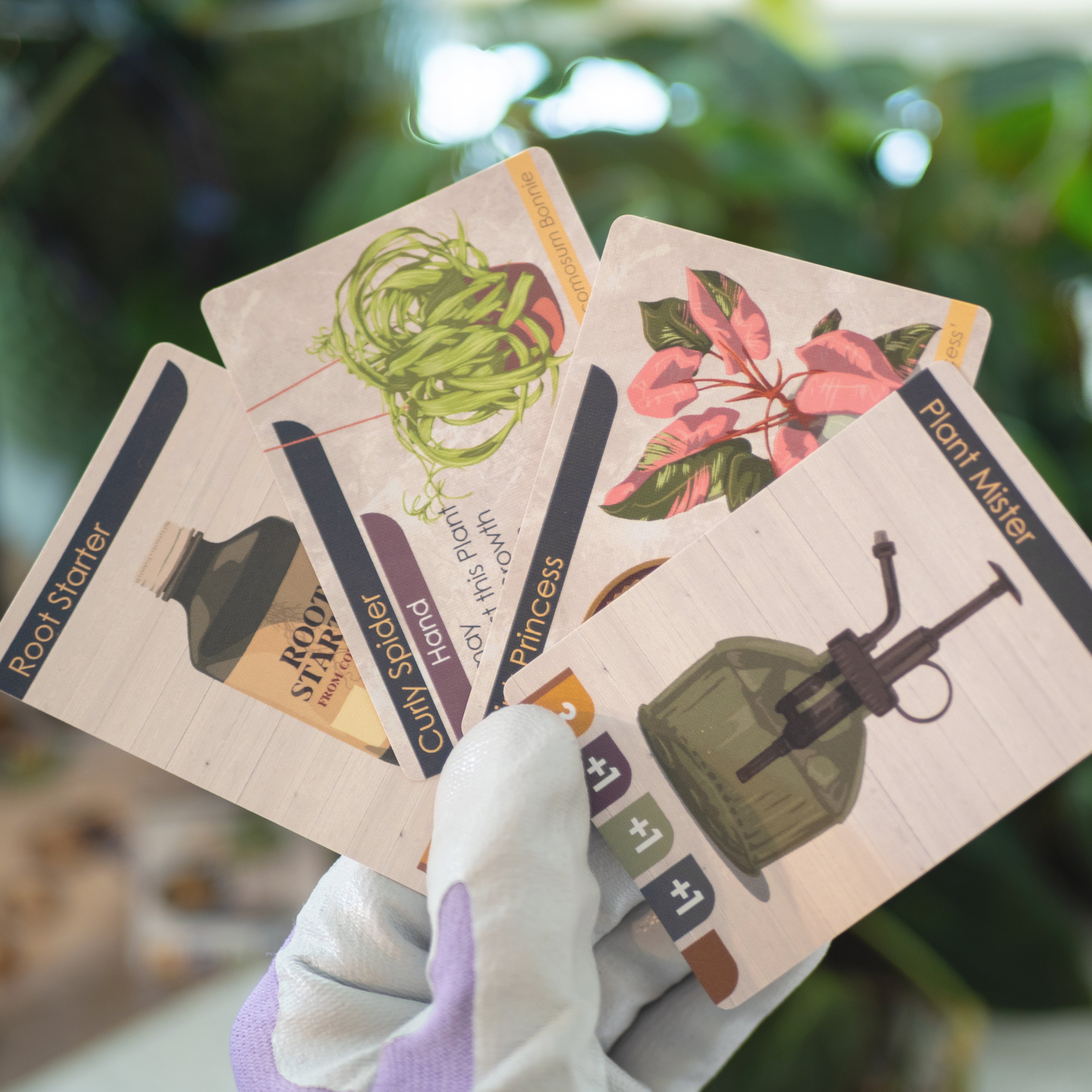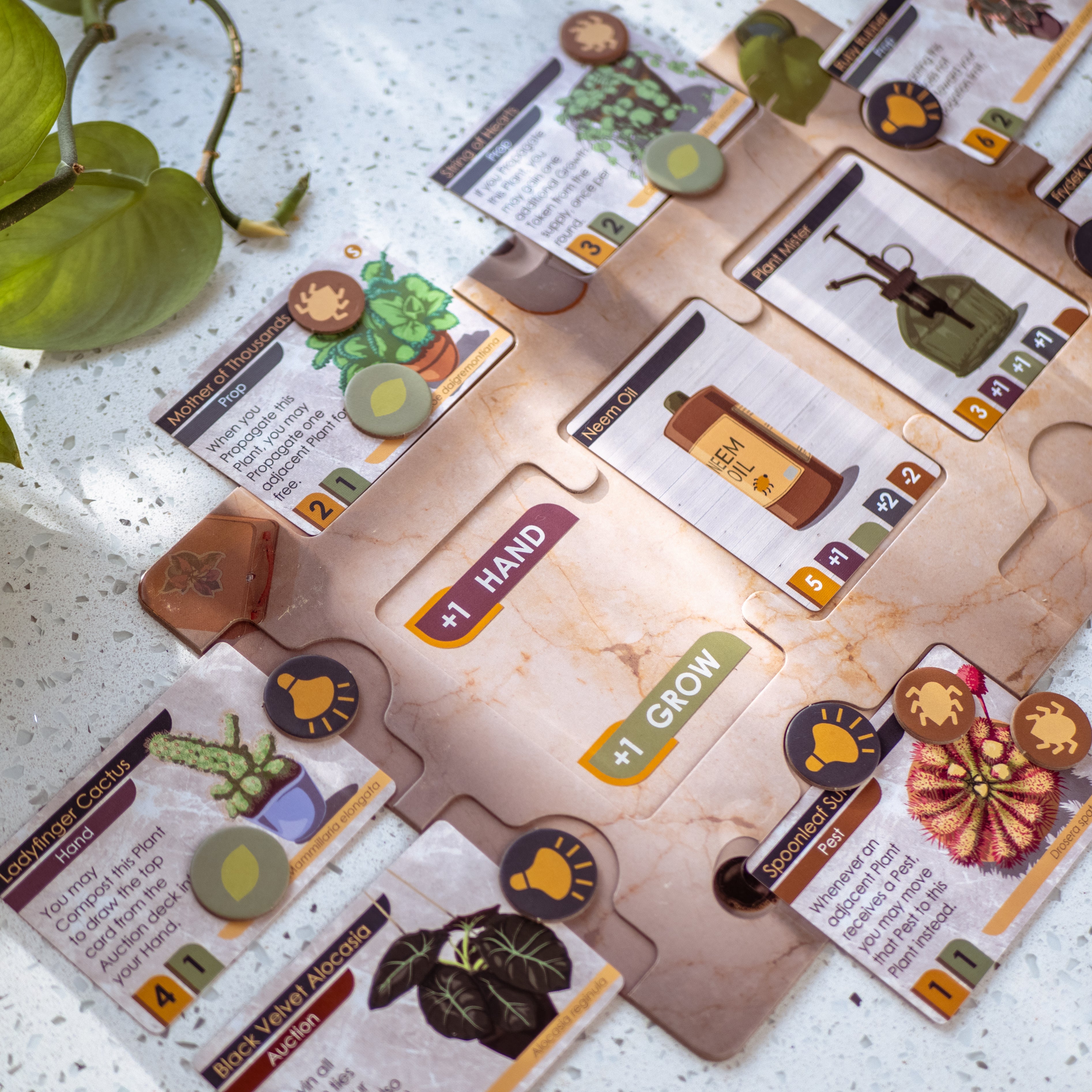 Propagation Station is a 2-4 player board game where you grow, clip, and bid on house plants and equipment to flourish the best home jungle.