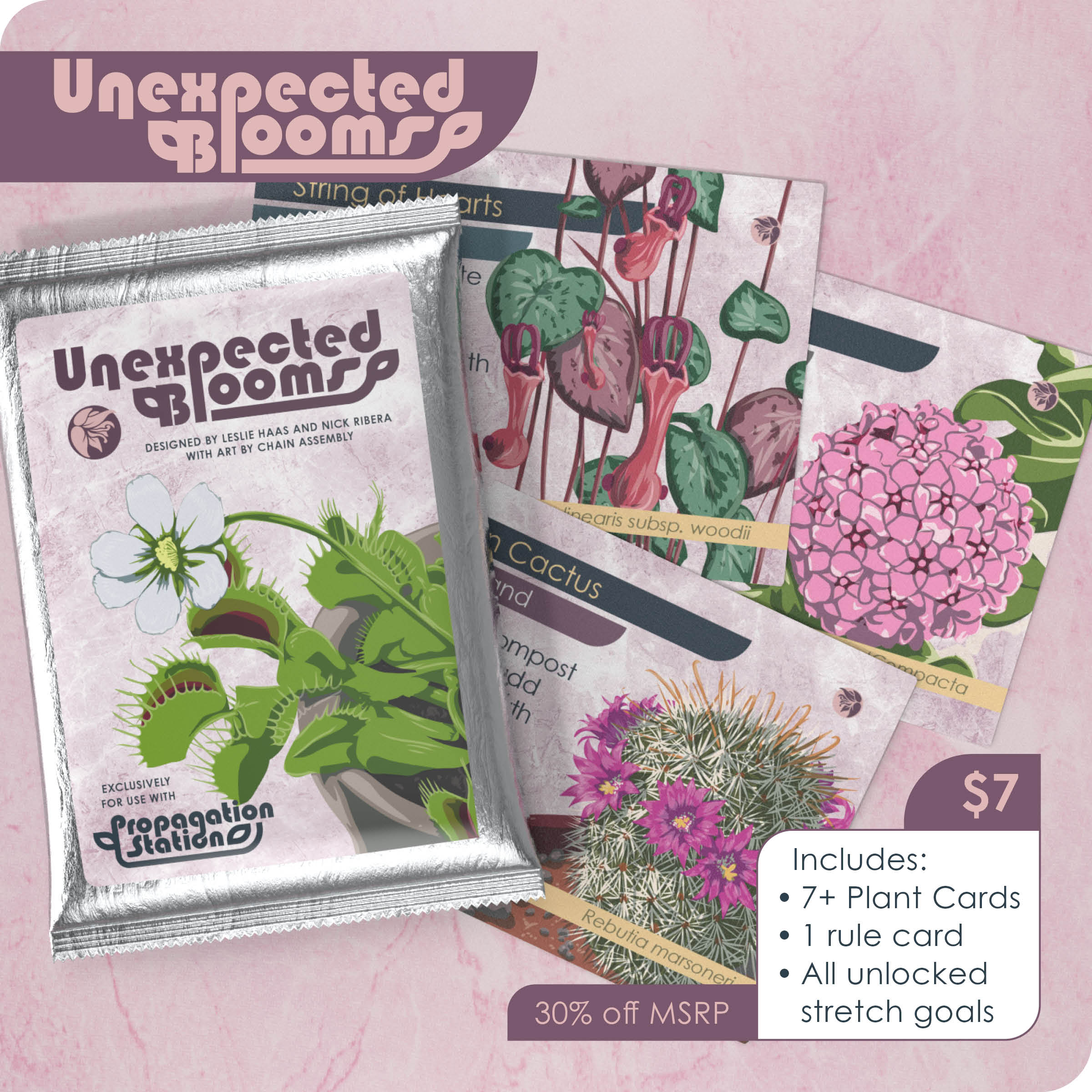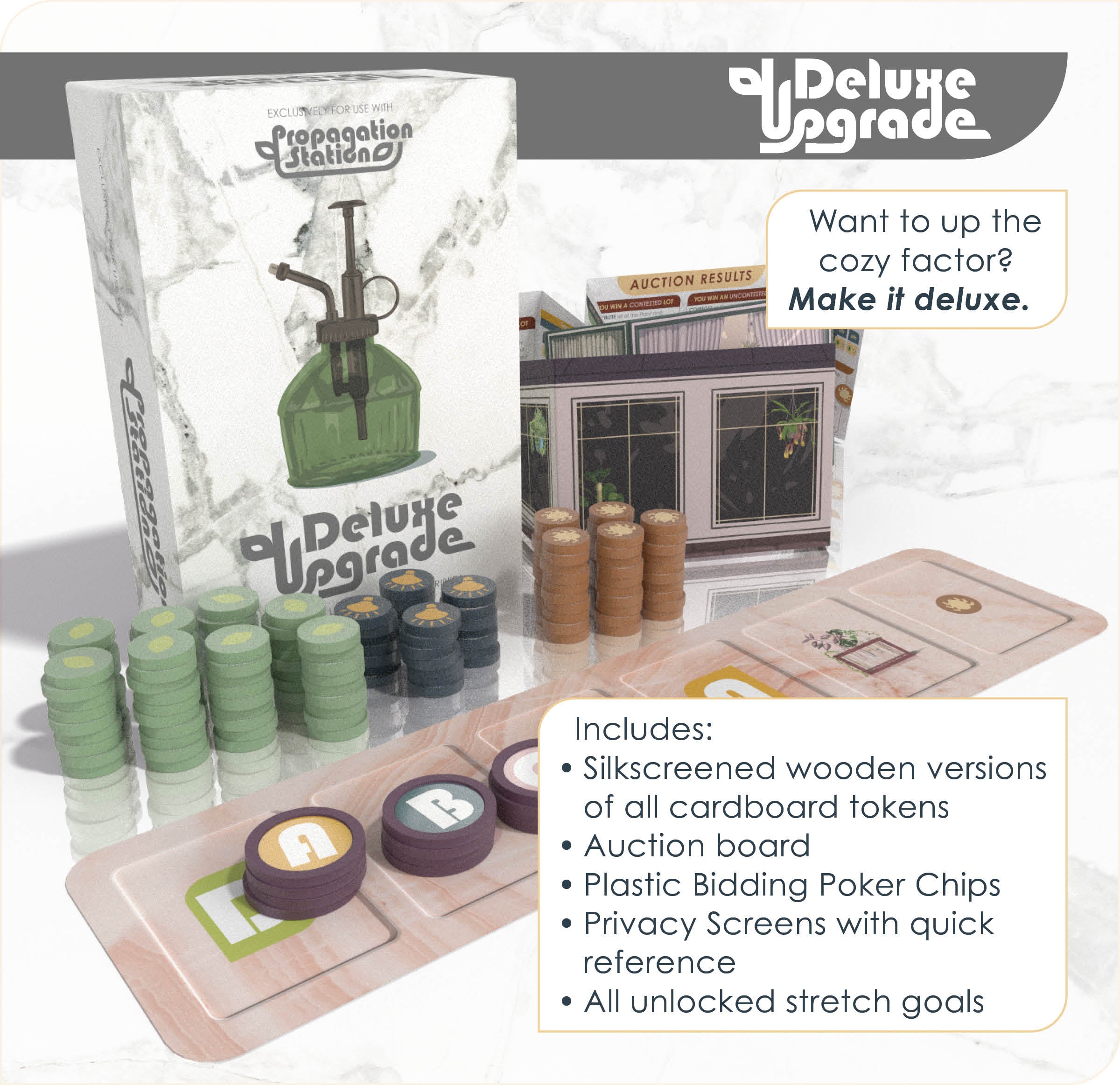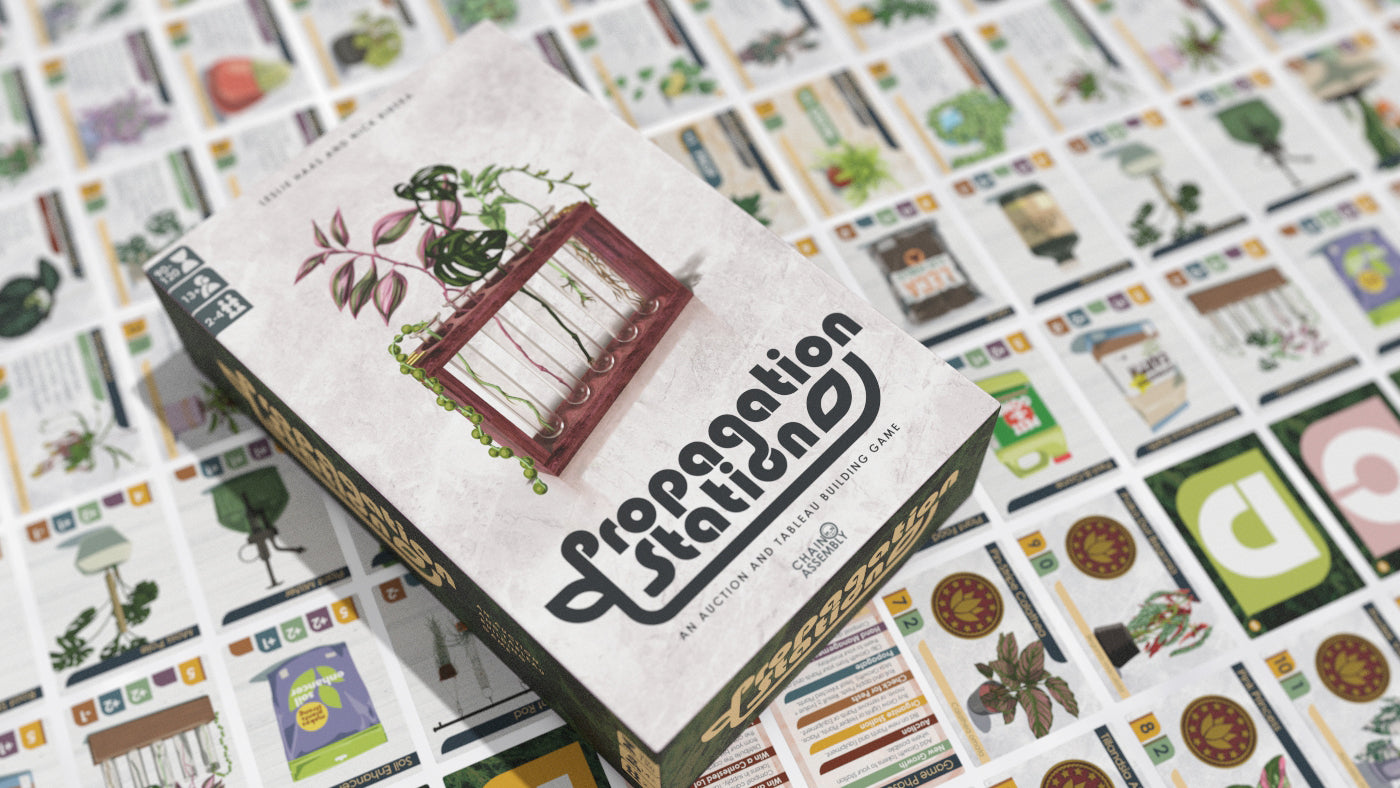 Propagation Station is a 2-4 player board game where you grow, clip, and bid on house plants and equipment to flourish the best home jungle. Acquire grow lights, pot your plants, and avoid pests.