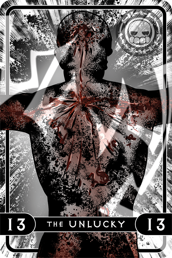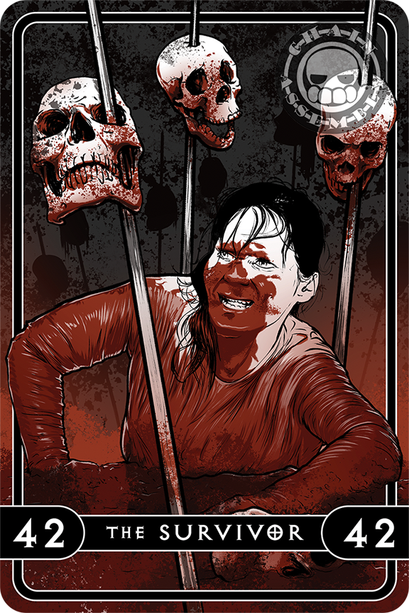 The idea for this card came from Kickstarter backer Jennifer, when she suggested False Alarm or Near Death as ideas for cards. From that I created The Survivor, inspired by the horror movie trope of a woman who survives all the tragedy that befalls her. After researching many horror movie endings to get inspired, I eventually realized that the act of surviving can easily be depicting by trudging through mud. So I ended up using some photos of theTough Muddercompetition for the inspiration.