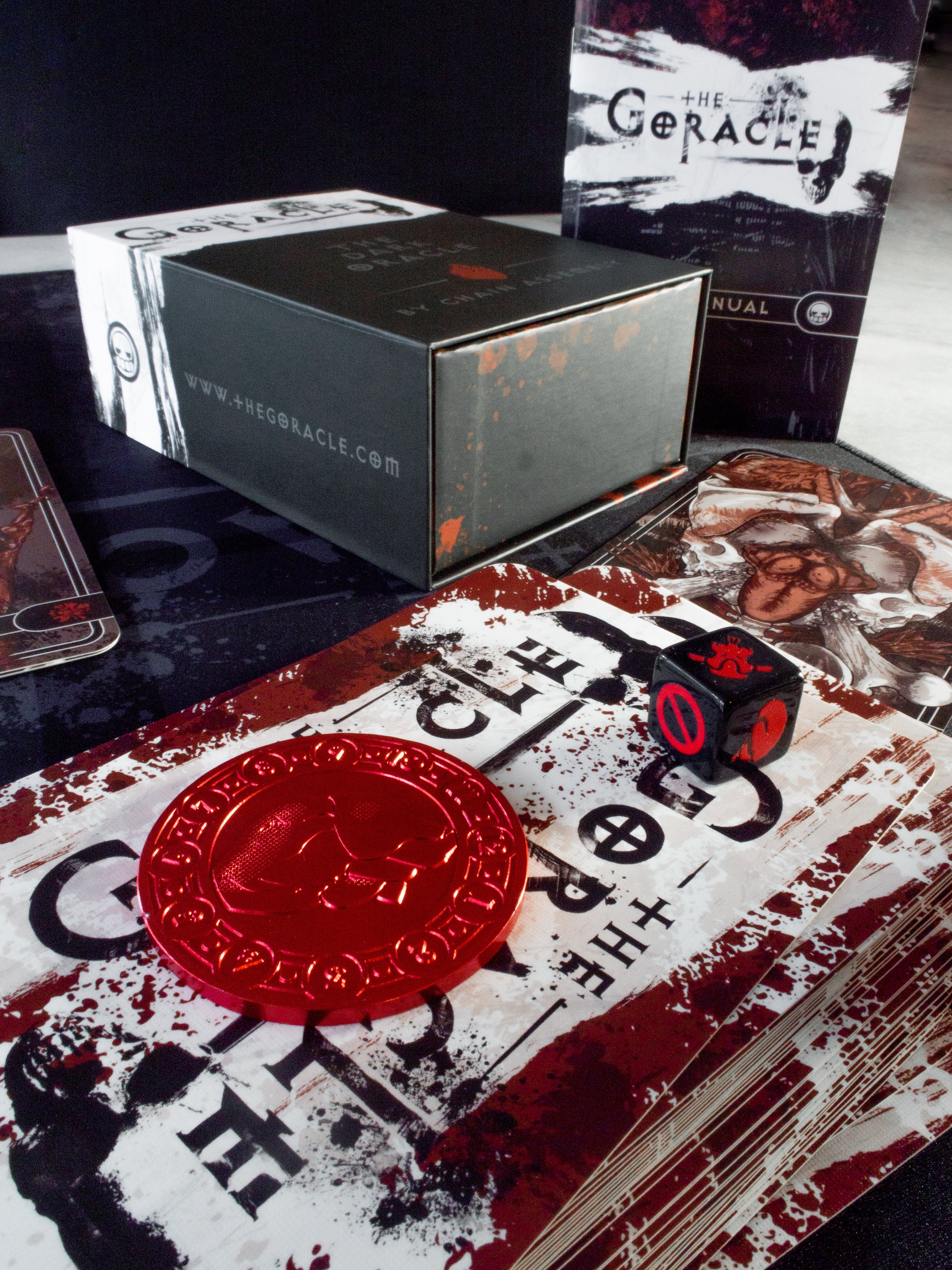 The Goracle presents beauty found within death, mutilation, and gore. The illustrations are inspired by insecurities and weaknesses and spins them into positives and strengths. This transformative effect, focused on the darkness, is the backbone of this deck. As you explore tougher questions, you may discover strengths within that you did not know were there, or you may find opportunities for growth like seedlings sprouting from a crack in the sidewalk.