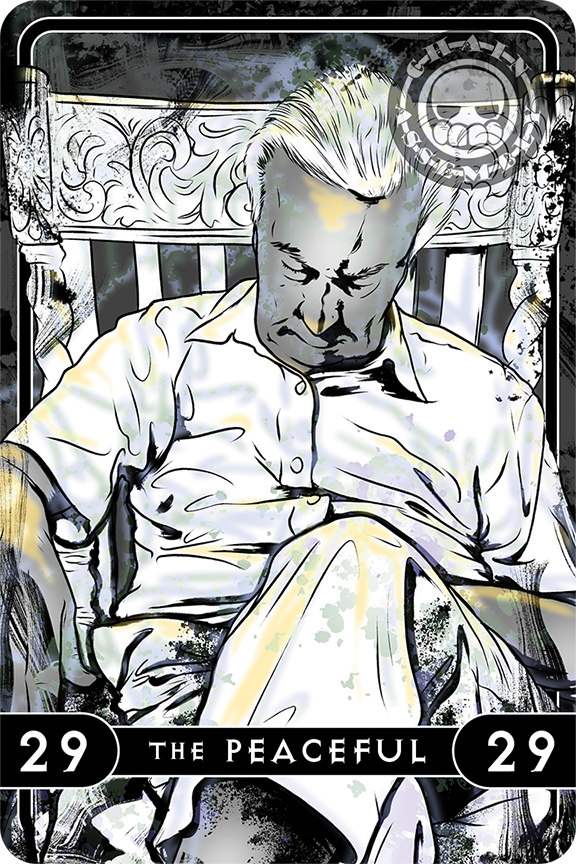 With so many cards depicting violent deaths, I wanted one that showed the death we all want. Quietly, in our sleep, comfortable and without a care in the world.