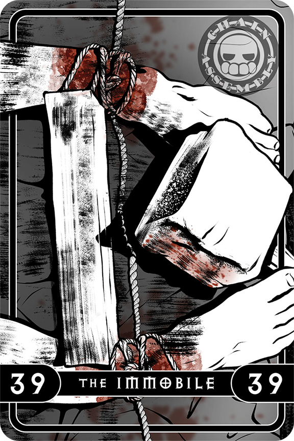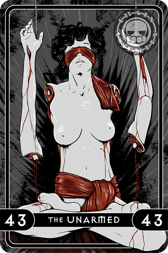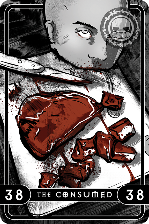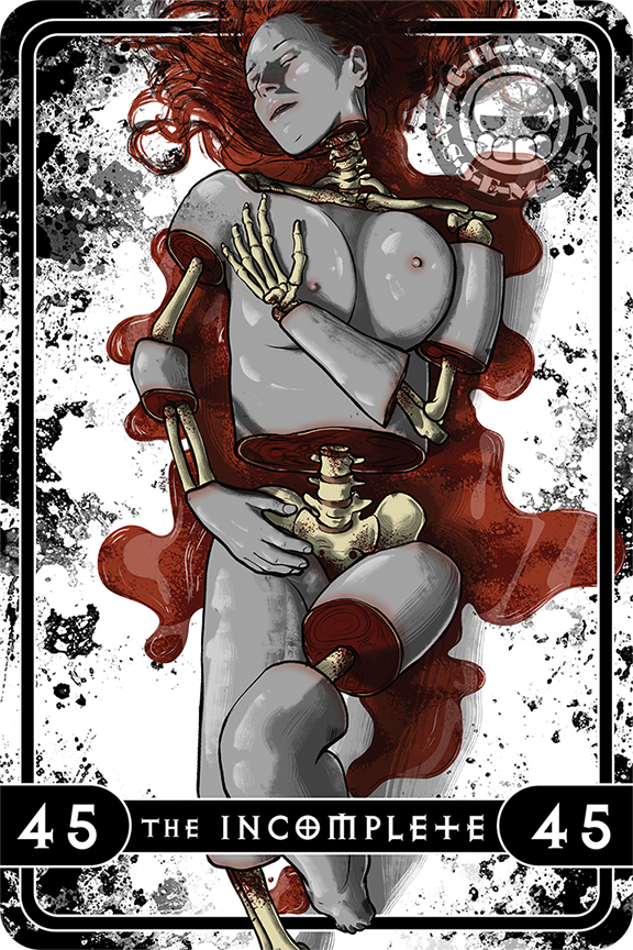 Originally devised as a counterpart to The Immobile, this card also skews closely to The Castrated. The imagery is inspired by the batshit crazy films "Boxing Helena" and "Santa Sangre" - both about men who's egos are so fragile that they have to destroy the women they covet.